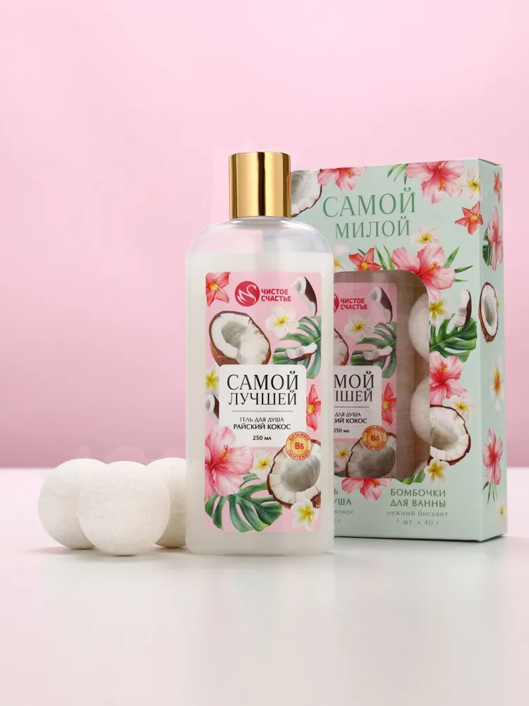 SIMALAND Подарочный набор «Самой милой», гель для душа, 250 мл и бомбочки для ванны 4*40